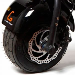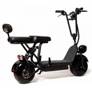 Аккумулятор имеет мощность 13 Ач. Он находится в специальном боксе, изготовленном из металлической конструкции, сверху закрыт крышкой. Разъем для подзарядки расположен с правой стороны деки сбоку. Переднее крыло и заднее отлично защищают от брызг. Представленная модель скутера отлично подойдет для тех, кто планирует спокойную езду по небольшому городу, на даче, или катание с ребенком.