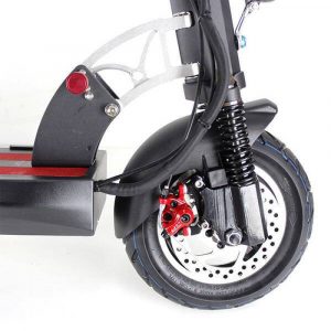 Чтобы было комфортно ездить на представленном самокате в тёмное время суток, была предусмотрена яркая фара спереди и габариты, расположенные на заднем крыле. Последние выступают в качестве стоп-сигнала. Дополнительные светоотражатели на деке обеспечивают видимость сзади. Освещение включается кнопкой, находящейся на руле. Для экстренных случаев предусмотрен звуковой сигнал и 2 дисковых тормоза, обеспечивающие быструю остановку. Основное управление находится на руле, что гарантирует удобный доступ. Стойку, при этом, можно при желании отрегулировать по высоте. Он может выдвигаться до 110-ти см, что позволяет подстроить её под рост водителя, обеспечивая максимальный комфорт во время поездок.