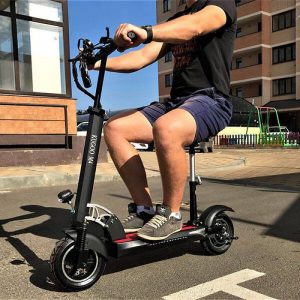 - Стильный вид и компактность. Руль можно отрегулировать по высоте. Имеются складные ручки, рулевая стойка и сиденье. Самокат легко помещается в багажник автомобиля.