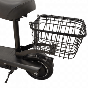 Задняя корзина электросамоката довольно вместительная. Туда можно положить сумку чтобы она не мешала в поездке. Помимо этого в багажник удобно класть покупки, зонтик или бутылку воды.